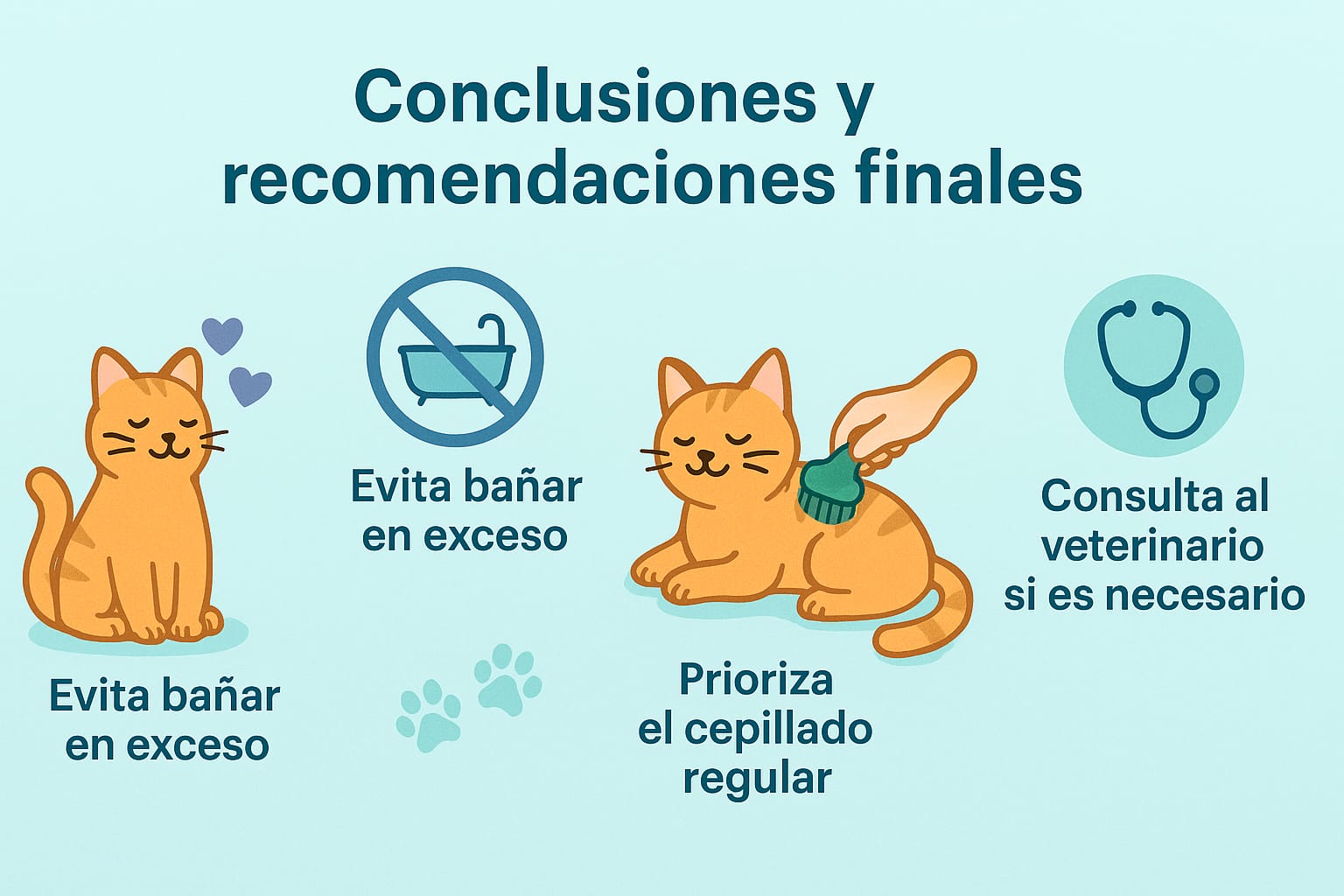 Por último, el tiempo de calidad es fundamental. Dedicar unos minutos a acariciar o cepillar a tu gato después del baño puede generar un sentimiento de seguridad y agrado. Asegúrate de utilizar un tono de voz suave y tranquilizador durante este tiempo. Con estos métodos, tu gato aprenderá que, aunque el baño no sea su actividad preferida, puede ser seguido de algo gratificante y placentero, mejorando así su disposición hacia futuros baños.